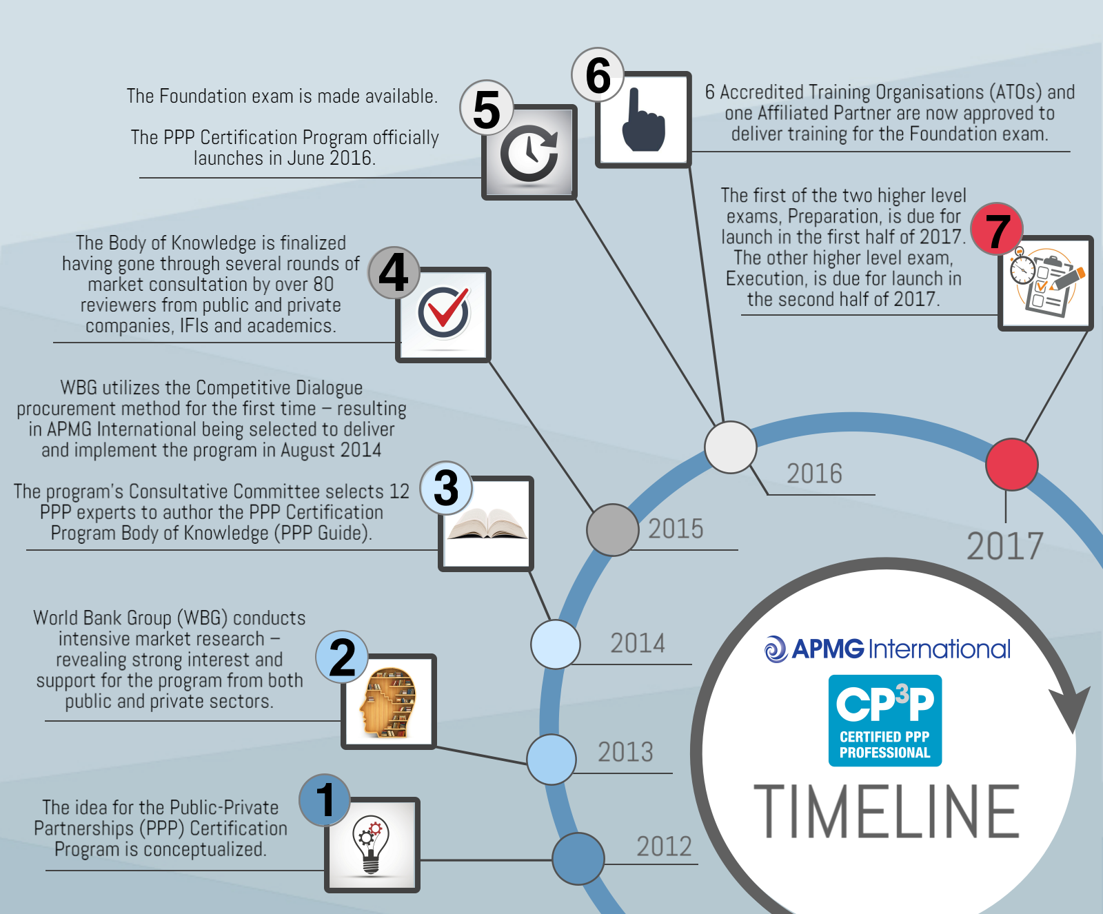 - Launched in June 2016, the PPP Certification Program Guide, comprising PPP best practices from around the world was authored by a team of 12 PPP practitioners with extensive regional and sectoral knowledge and reviewed by over 80 PPP experts. Designed for the PPP community, both existing professionals and individuals interested in developing their knowledge of the sector. Over 60,000 people have downloaded the free online publication