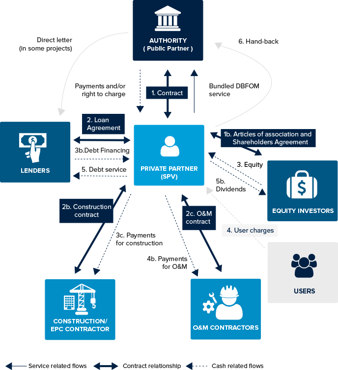 This section explains further the basic structure of a private finance PPP, assuming the form (or the scope) of a DBFOM that was first introduced in section 4.