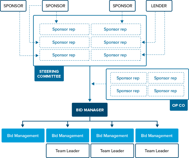 - The SC follows a formal framework that defines its role in relation to the bid management and the governing bodies of the sponsors/parent companies.