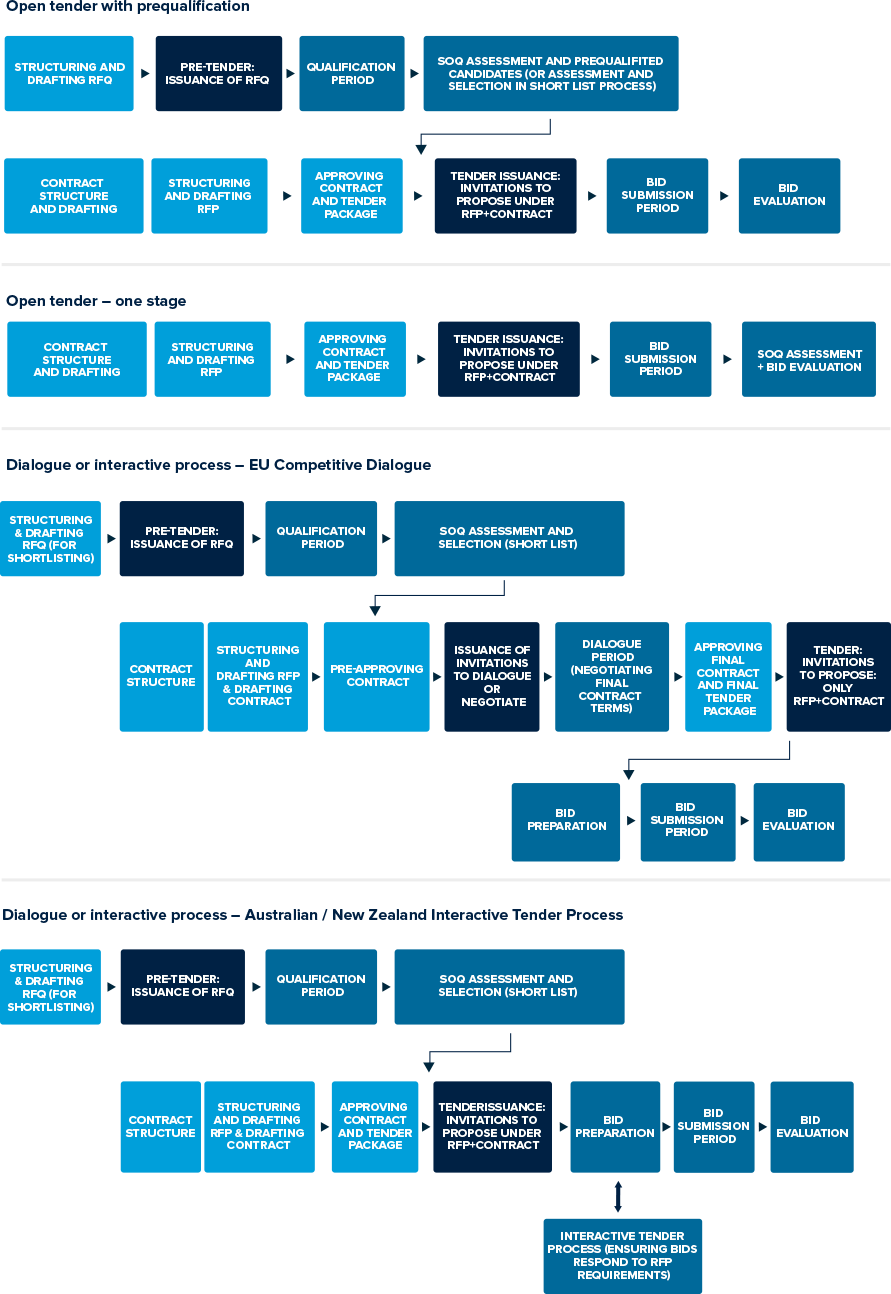 Note: EU= European Union; RFP= request for proposal; RFQ= request for qualification; SoQ= Submission of Qualifications.